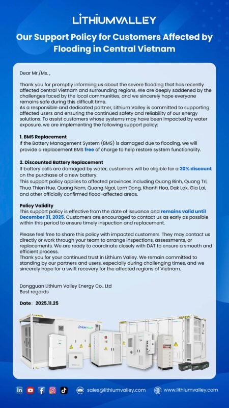 Dongguan, China — November 25, 2025Lithium Valley today announced a special support policy for customers whose Lithium Battery Energy S...